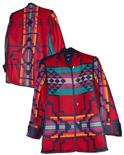 Jackets made from Pendleton fabrics are reversible. Jackets from other fabrics (wool blend, tapestry, fleece, chamois) are generally lined with soft "doe-suede" in a coordinating color. Denim jackets may be lined with doe-suede, patterned chamois, or cotton print. (Contact us to discuss specifics.)